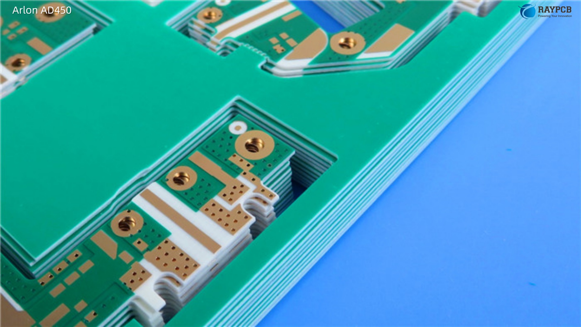 Unlike FR-4, PTFE-based materials are inherently non-stick. Proper surface activation before copper plating is essential. Most shops use sodium etching or plasma treatment on PTFE surfaces to achieve adequate bond strength. Skipping this step is a recipe for delamination.