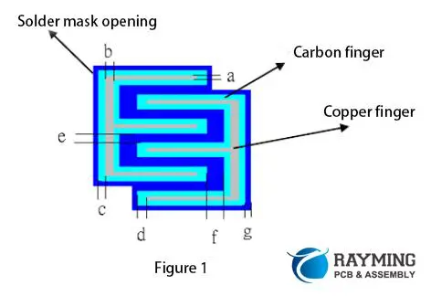3. A:โIf copper fingers are under the carbon keys, the copper fingers can be reduced appropriately to ensure no copper is exposed. The minimum width of the copper fingers (a) is 0.12mm, and the connection function (b) must be 0.25mm. (See Figure 1)