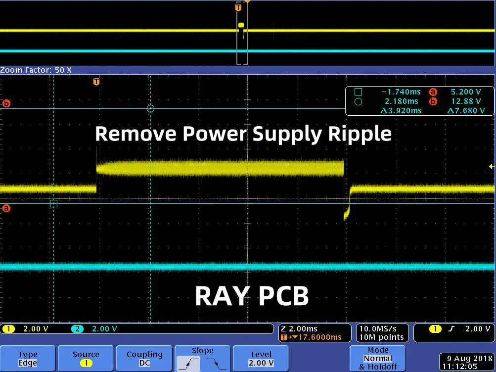 - Inductor Ripple:ย The inductor used in the switching power supply also contributes to ripple. As the current through the inductor changes during the switching cycles, a small voltage ripple is induced across its winding resistance.